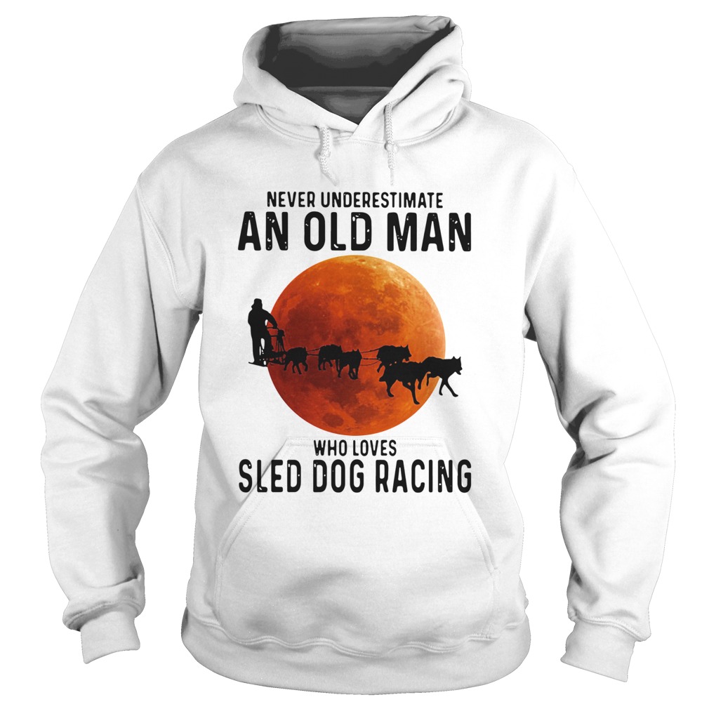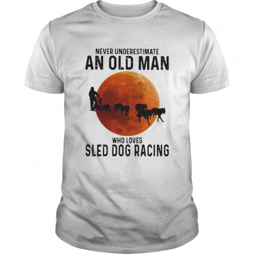 Never Underestimate An Old Man Who Loves Sled Dog Racing Sunset shirt, hoodie, sweater, longsleeve and ladies t-shirt
