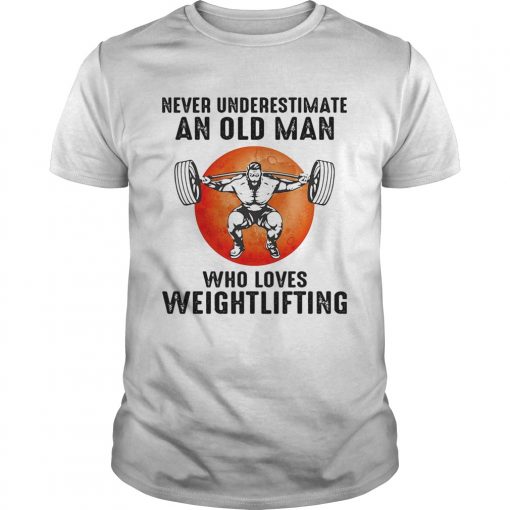 Never underestimate an old man who loves weight lifting shirt, hoodie, sweater, longsleeve and ladies t-shirt