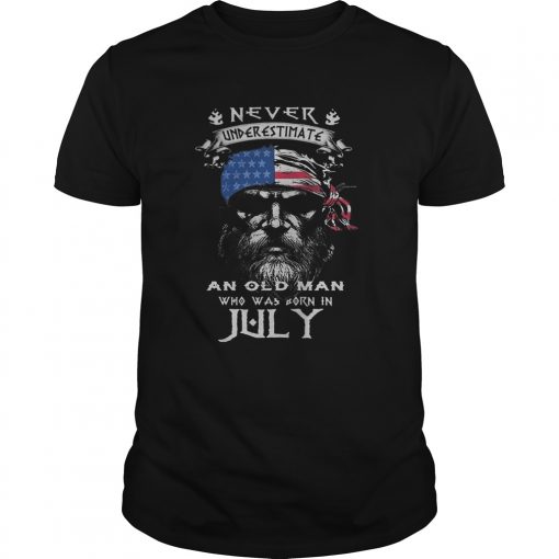 Never underestimate an old man who was born in July American flag veteran Independence Day shirt, hoodie, sweater, longsleeve and ladies t-shirt