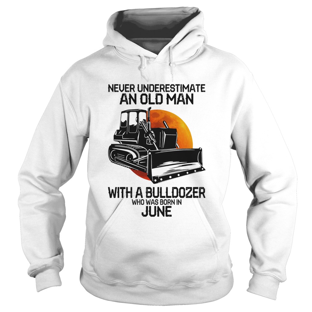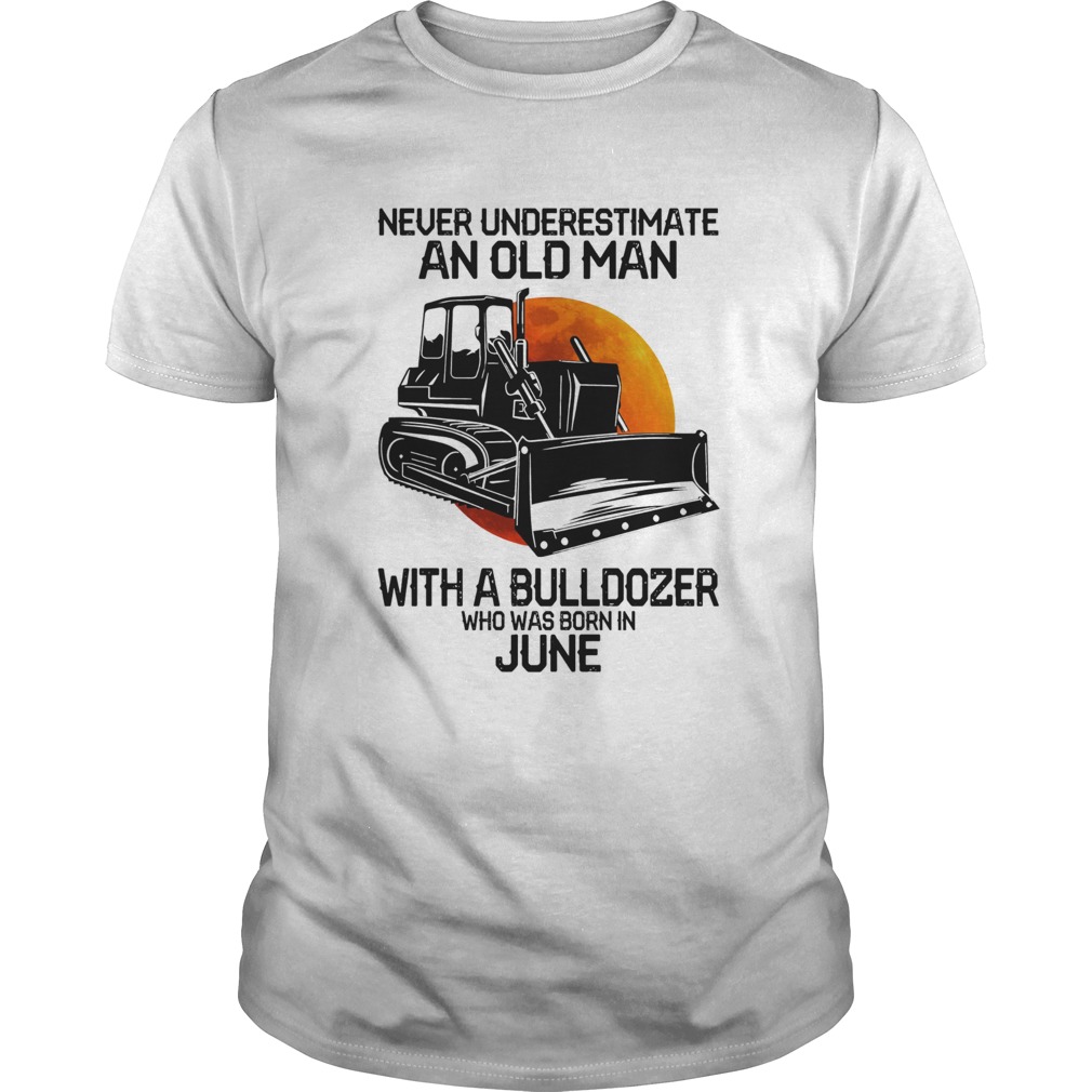 Never underestimate an old man with a bulldozer who was born in june shirt, hoodie, sweater, longsleeve and ladies t-shirt