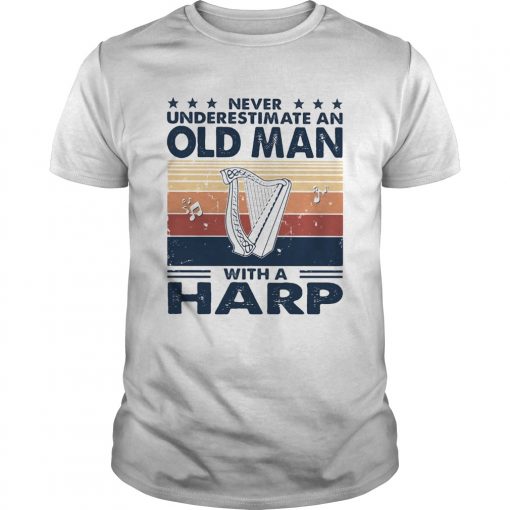 Never underestimate an old man with a harp vintage retro stars shirt, hoodie, sweater, longsleeve and ladies t-shirt