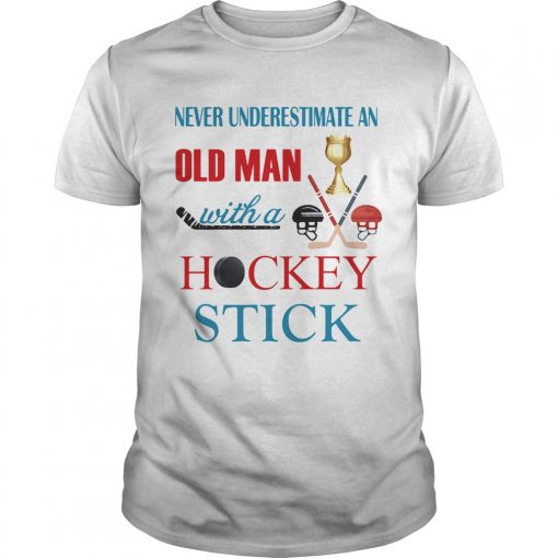 Never underestimate an old man with a hockey stick shirt, hoodie, sweater, longsleeve and ladies t-shirt