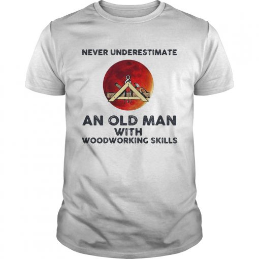 Never underestimate an old man with woodworking skills sunset shirt, hoodie, sweater, longsleeve and ladies t-shirt