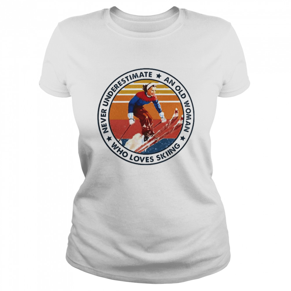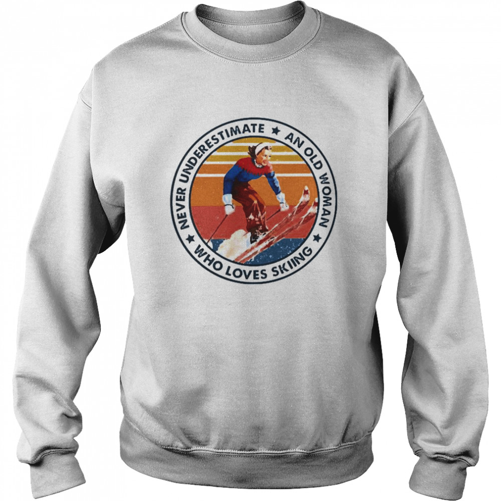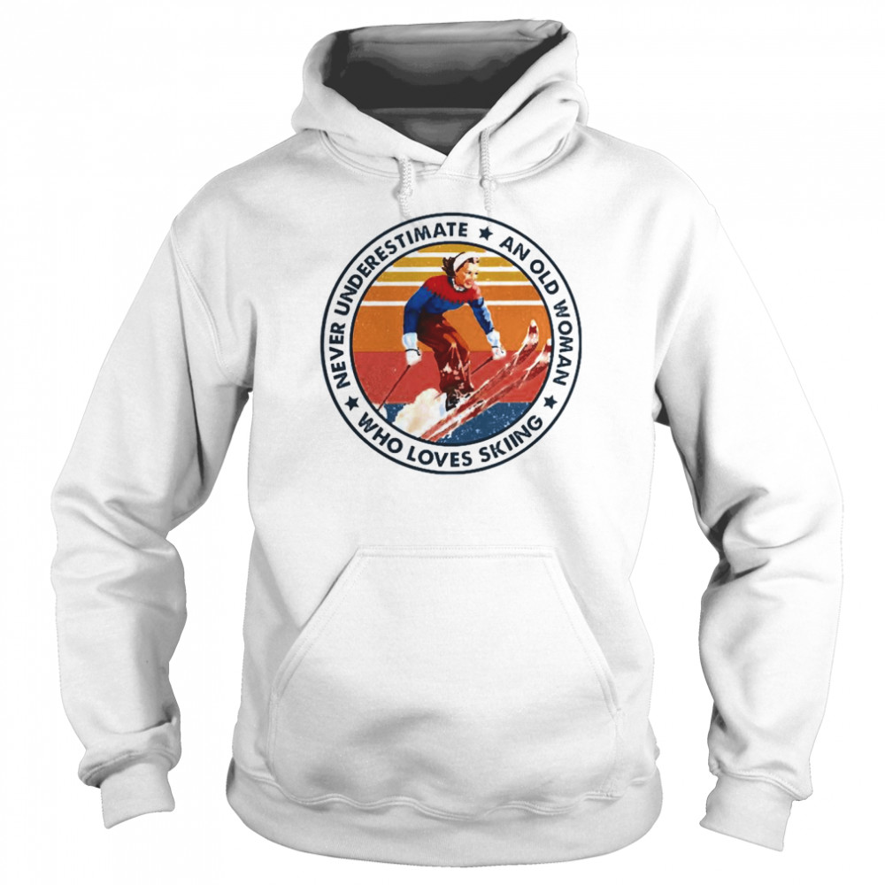 Never underestimate an old woman who loves skiing shirt, hoodie, sweater, longsleeve and ladies t-shirt
