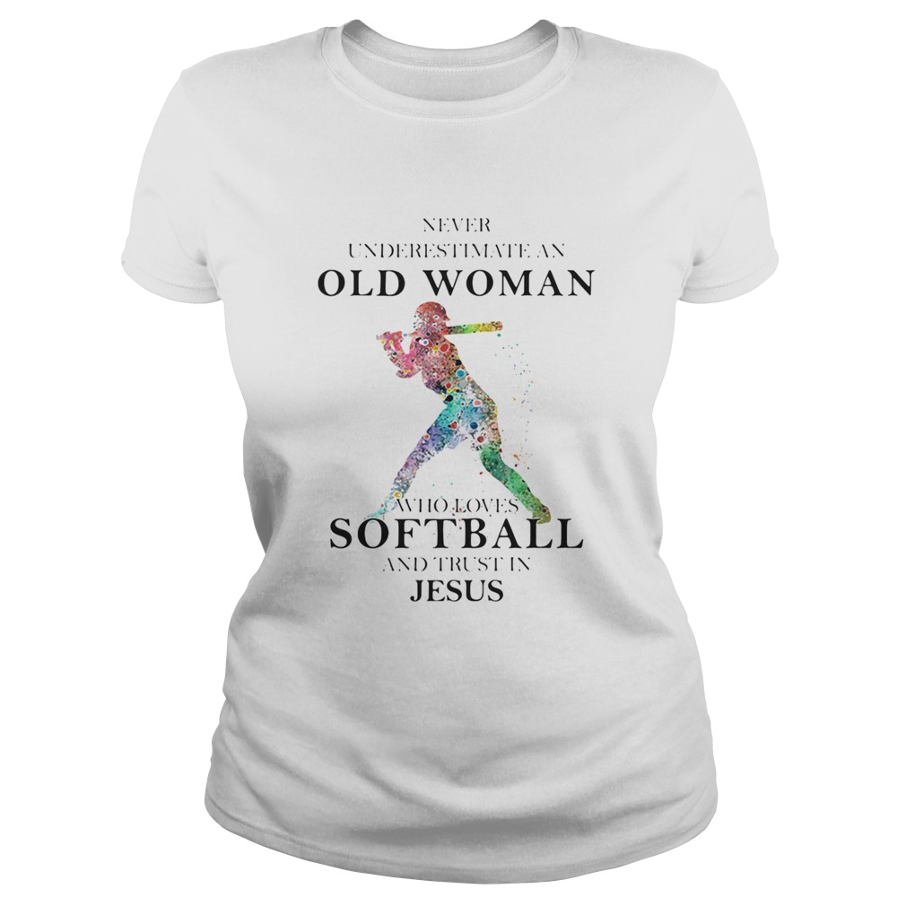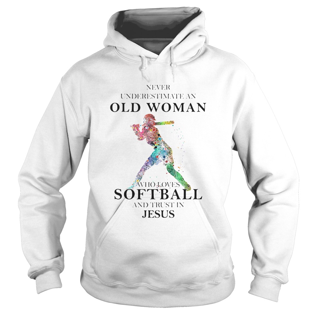 Never Underestimate An Old Woman Who Loves Softball And Trust In Jesus shirt, hoodie, sweater, longsleeve and ladies t-shirt