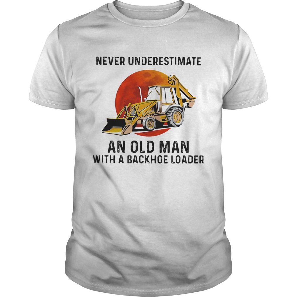 Never underestimate an old woman with a backhoe loader sunset shirt, hoodie, sweater, longsleeve and ladies t-shirt