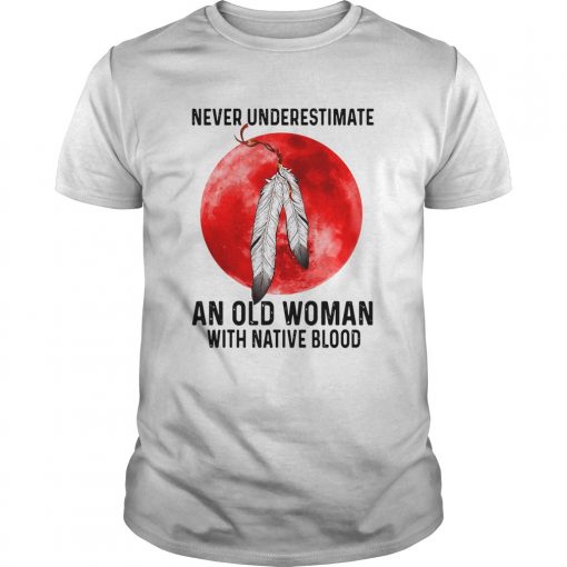 Never Underestimate An Old Woman With A Native Blood shirt, hoodie, sweater, longsleeve and ladies t-shirt