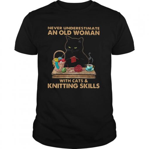 Buy Now: Never Underestimate An Old Woman With Cat And Knitting Skills shirt