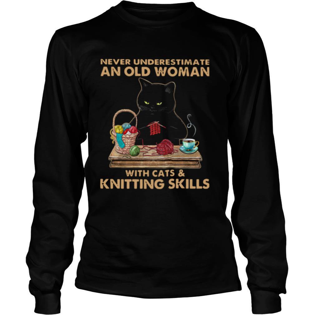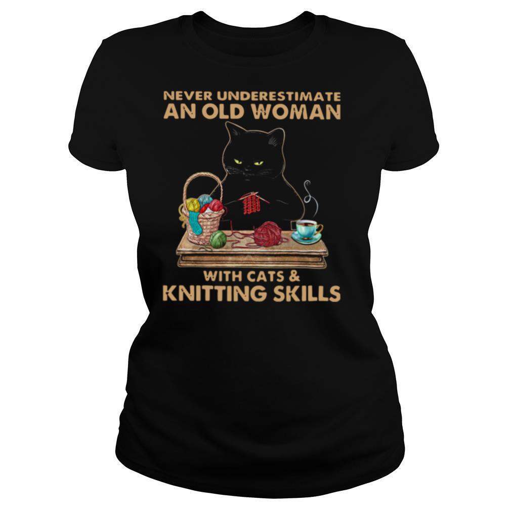 Never Underestimate An Old Woman With Cat And Knitting Skills shirt, hoodie, sweater, longsleeve and ladies t-shirt