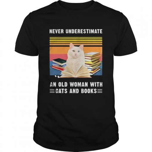 NEVER UNDERESTIMATE AN OLD WOMAN WITH CATS AND BOOKS TURKISH VAN CAT VINTAGE RETRO shirt, hoodie, sweater, longsleeve and ladies t-shirt