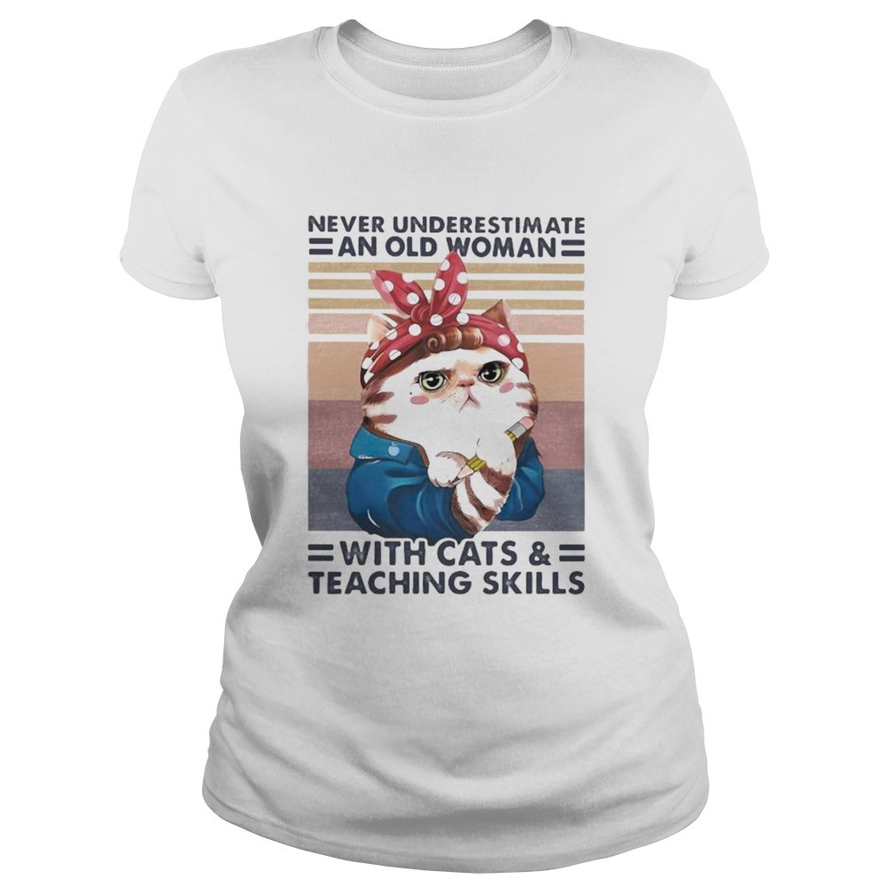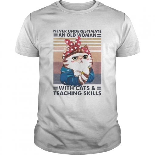 Never underestimate an old woman with cats and teaching skills cat ladies vintage shirt, hoodie, sweater, longsleeve and ladies t-shirt