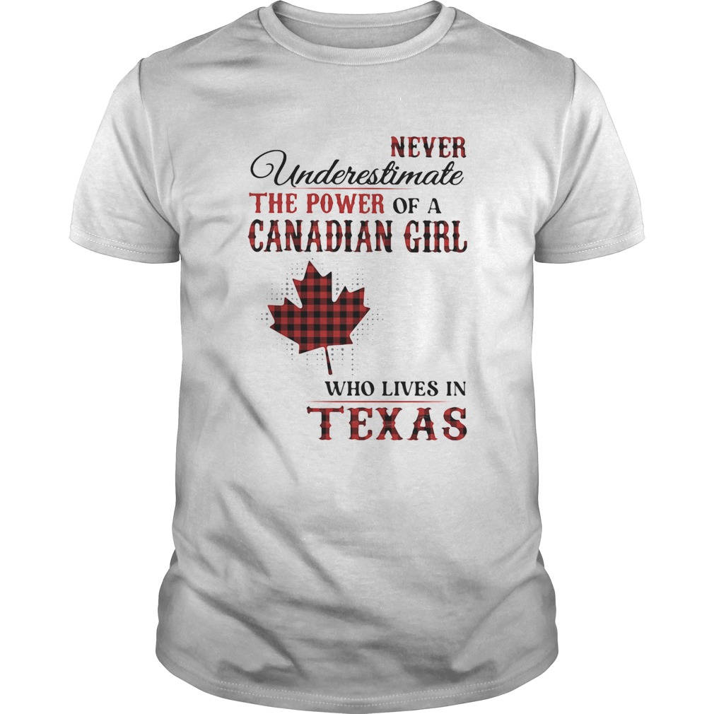 Never underestimate the power of a canadian girl who lives in texas shirt, hoodie, sweater, longsleeve and ladies t-shirt