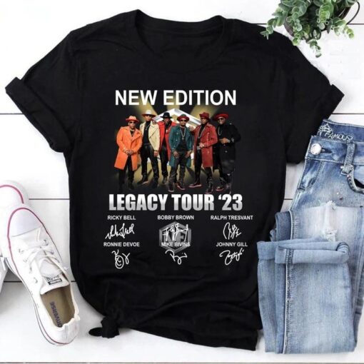 What sets the New Edition Legacy Tour 2023 Signatures T-Shirt apart is its unique blend of style and nostalgia. Picture yourself in this shirt, adorned with the signatures of the iconic New Edition band members, as you relive the magic of their legendary 2023 tour. The design captures the essence of a bygone era, where music was more than just sounds – it was a way of life. The intricate signatures add a personal touch, making you feel connected to the music and memories that define the era.
