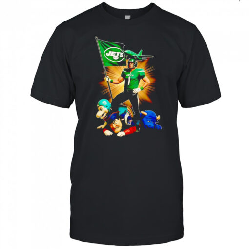 Embrace the energy of the New York Jets like never before with this exclusive New York Jets mascot standing with flag shirt. Donning this shirt is more than just wearing team colors—it’s a declaration of your devotion to the Jets. Be the envy of fellow fans as you showcase your team pride in a unique and eye-catching way. Don’t miss the chance to own a piece that embodies the essence of being a loyal Jets fan. Elevate your game day outfit or upgrade your everyday look with this must-have shirt. Order now and let your Jets spirit soar higher than ever before!