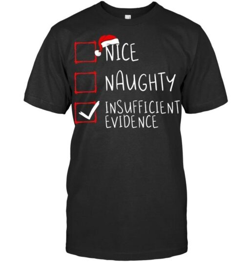 Nice Naughty Insufficient Evidence Christmas Santa Claus T Shirt, hoodie, sweater, longsleeve and ladies t-shirt