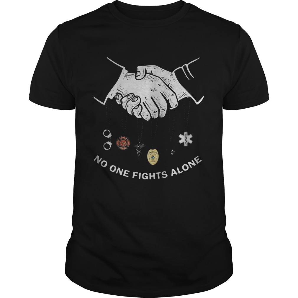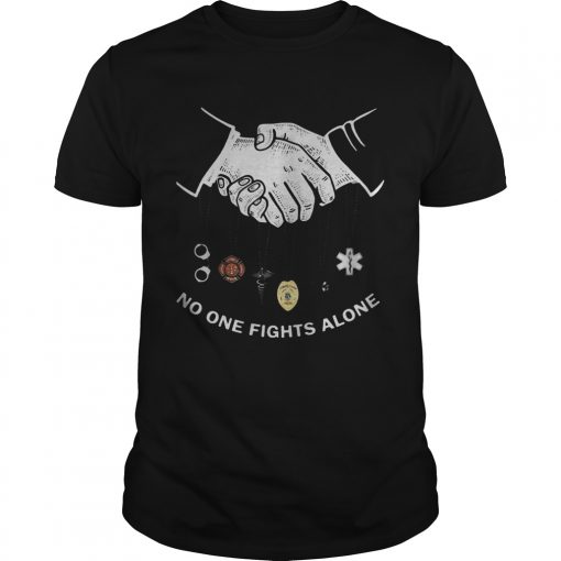 No One Fights Alone Shake Hands Corrections Firefighter Nurse Police Dispatch EMS shirt, hoodie, sweater, longsleeve and ladies t-shirt
