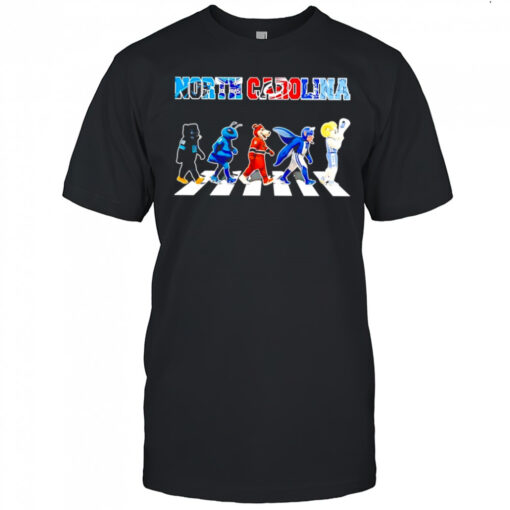 North Carolina sports team Carolina Panthers Hornets Hurricanes Duke Blue Heels mascots walking across shirt, hoodie, sweater, longsleeve and ladies t-shirt