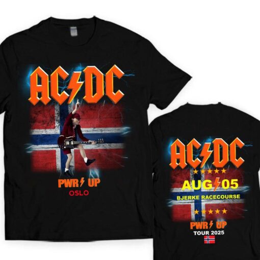 Get ready to rock the streets with the electrifying Norway Olso3 PWR ACDC UP Tour 2025 Unisex T-Shirt that screams music, style, and attitude. This iconic design pays homage to the legendary AC/DC band’s tour in Oslo, Norway, in 2025. The shirt features a bold graphic of the city’s skyline illuminated by the pulsating energy of the concert, capturing the essence of the rock ‘n’ roll spirit. Whether you’re a hardcore fan or simply love edgy, urban fashion, this tee is a must-have for those who want to stand out from the crowd. The striking contrast of the vibrant colors against the black background makes it a statement piece that exudes confidence and individuality.