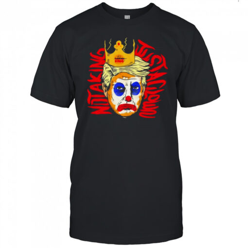 In a world where humor meets politics, stand out with our Not a king just a clown Trump shirt. This shirt is not just apparel; it’s a statement, a bold declaration of individuality. Crafted from premium cotton, it offers a luxurious feel against your skin while ensuring durability. The striking design featuring a whimsical caricature adds a touch of wit to your outfit, sparking conversations and turning heads wherever you go. Let your style reflect your unique perspective with this one-of-a-kind shirt that blends comfort with a touch of rebellious charm.