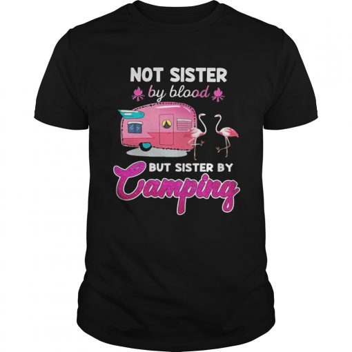 Not sister by blood but sister by camping flamingo shirt, hoodie, sweater, longsleeve and ladies t-shirt