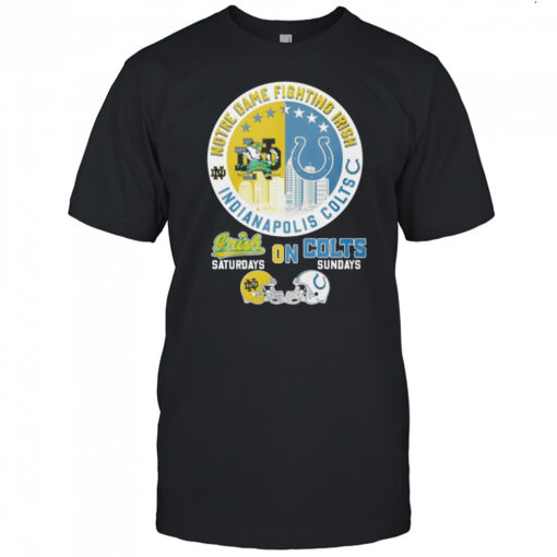 Notre Dame Fighting Irish on Saturdays and Indianapolis Colts on Sundays helmet logo mashup shirt, hoodie, sweater, longsleeve and ladies t-shirt