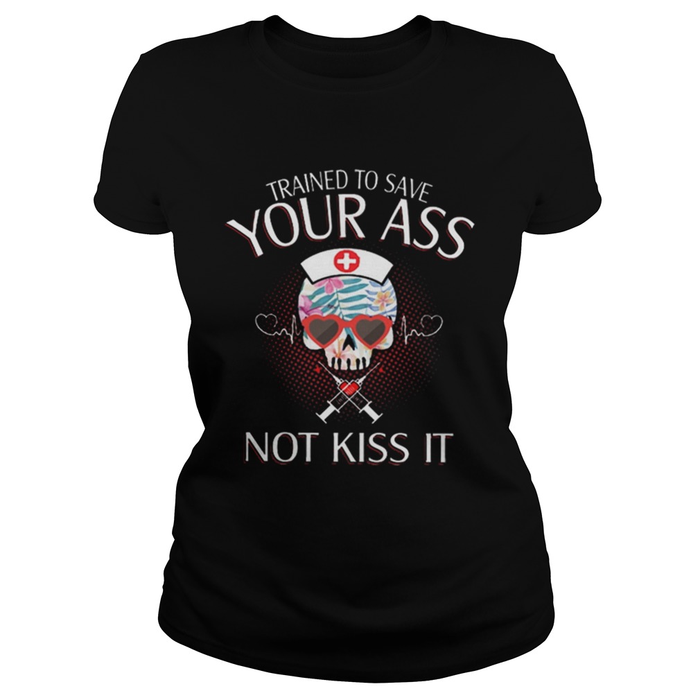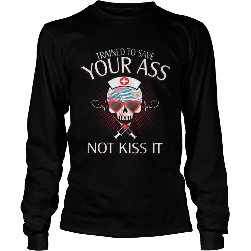 Nurse Skull Trained To Save Your Ass Not Kiss It shirt, hoodie, sweater, longsleeve and ladies t-shirt