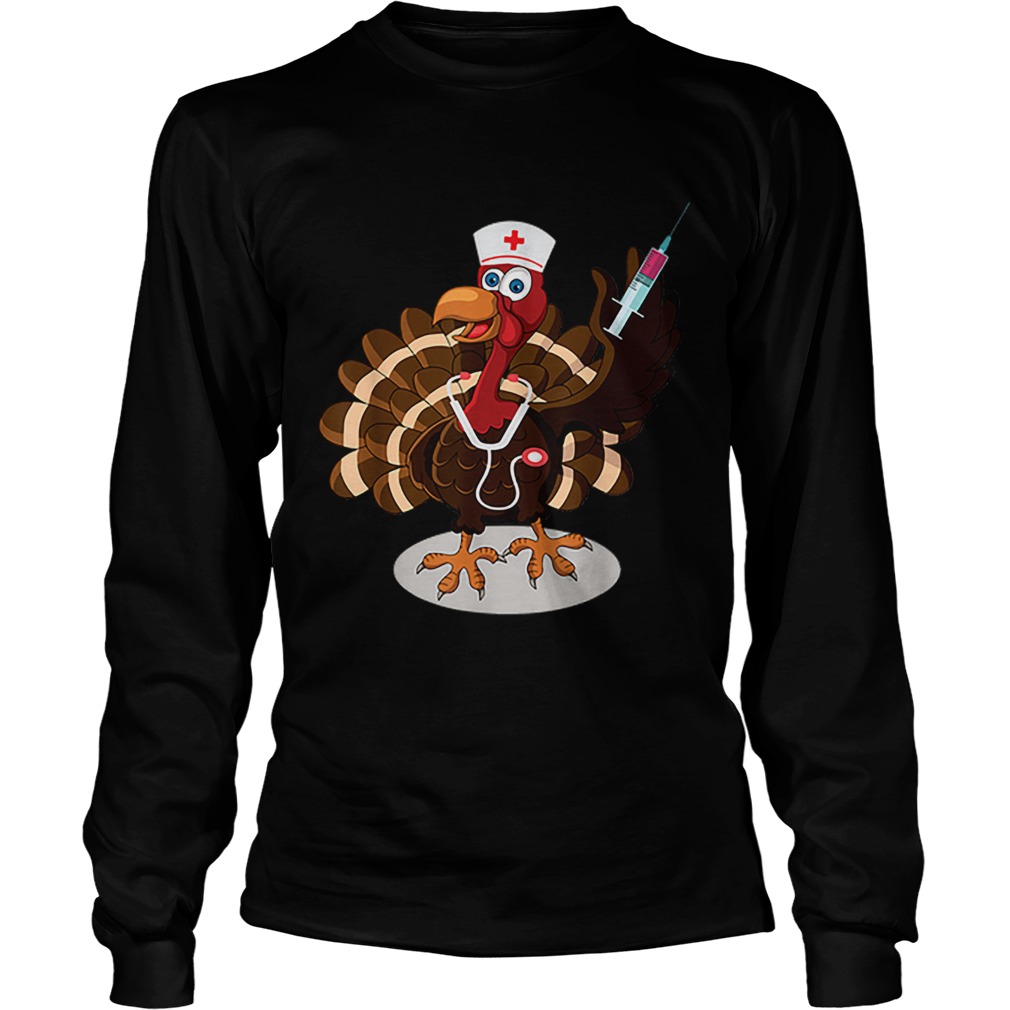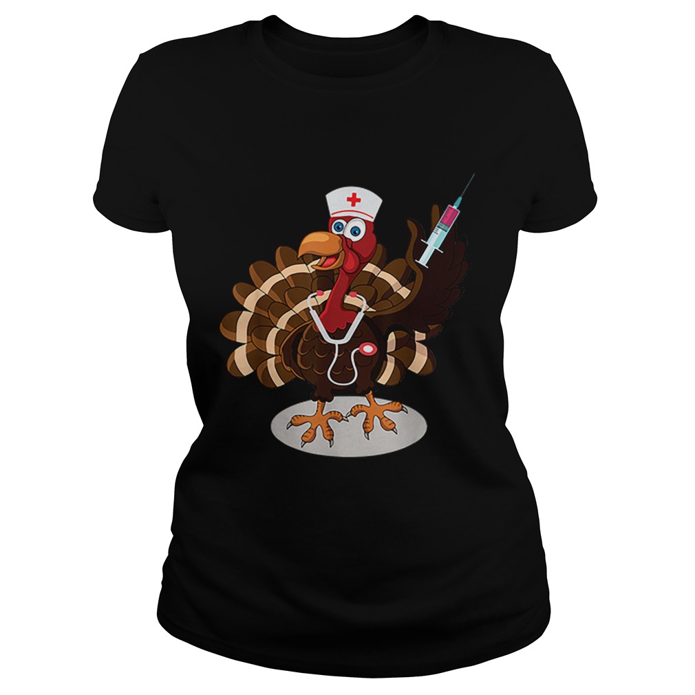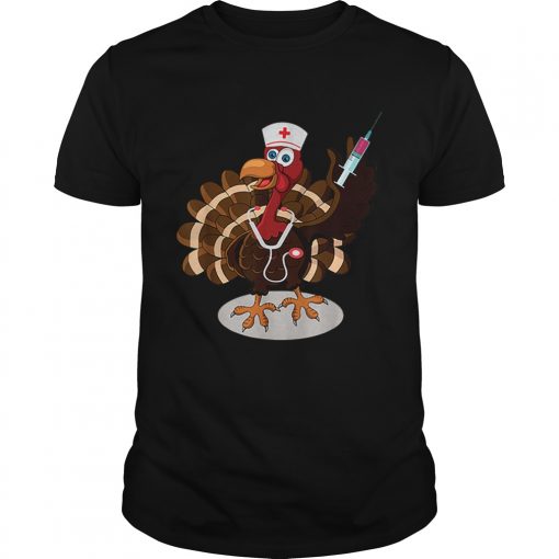 You can do quite large colored printed designs if you want to Nurse Turkey Costume Thanksgiving Doctor Gifts shirt . 8, 10, 12 colors, depending on how many stations the screen printer has and their automated or hand done presses.Around three colors designs are the cheapest and affordable. As you go beyond that, things can get expensive.So, you should be thoughtful about how many colors you’re using, because is having an impact on the final cost.On white shirts, you don’t have to use that backer color because you’re printing on a nice light color. That’s definitely a positive. Another plus of printing on lighter colored t-shirts is that the less ink, the softer the shirt will feel.So, one color over white it will feel slighter inky than let`s say, the Rolling Stones logo.Another downside is that as it gets older they tend to crack. So if your favorite t-shirt that has a bunch of little crack marks over time, you can go for the next method:Unlike plastisol, this is a super soft print. Water-based printing is easy to clean up. You won’t need chemicals to clean off the inks.Water-based printing is pretty much the environmentally choice because it’s all clean. You wash down the drain and you’re good to go. It works best on lighter garments because it doesn’t have the incredible coverage like plastisol inks.Used on darker fabrics, water-based printing will give you a bit of vintage or faded feel. If you have questions on what will look better on your shirt, it’s always worth asking the printers. Remember that they see this stuff every day.