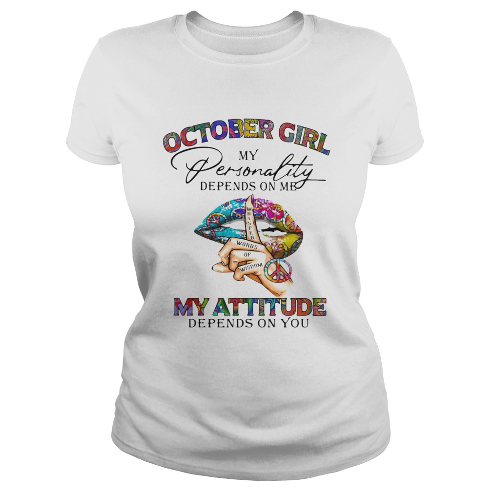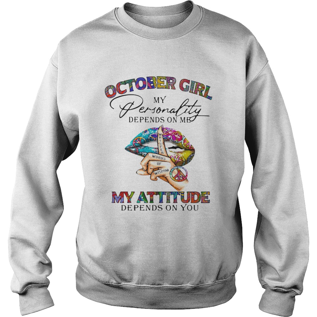 October Girl My Personality Depends On Me My Attitude Depends On You Lip Whisper Words Of Wisdom sh, hoodie, sweater, longsleeve and ladies t-shirt