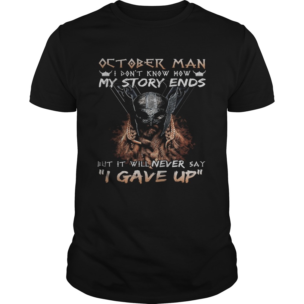 October man I dont know how my story ends but it will never say I gave up shirt, hoodie, sweater, longsleeve and ladies t-shirt