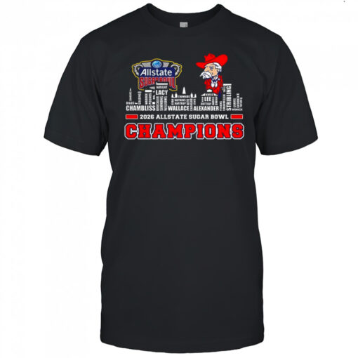 Ole Miss Rebels Allstate Sugar Bowl Champions 2026 name player city skyline shirt, hoodie, sweater, longsleeve and ladies t-shirt