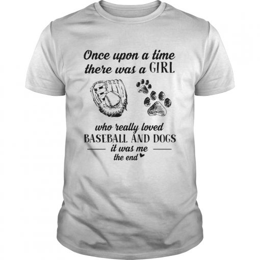 Once upon a time there was a girl who really loved baseball and dogs paw it was me the end shirt, hoodie, sweater, longsleeve and ladies t-shirt