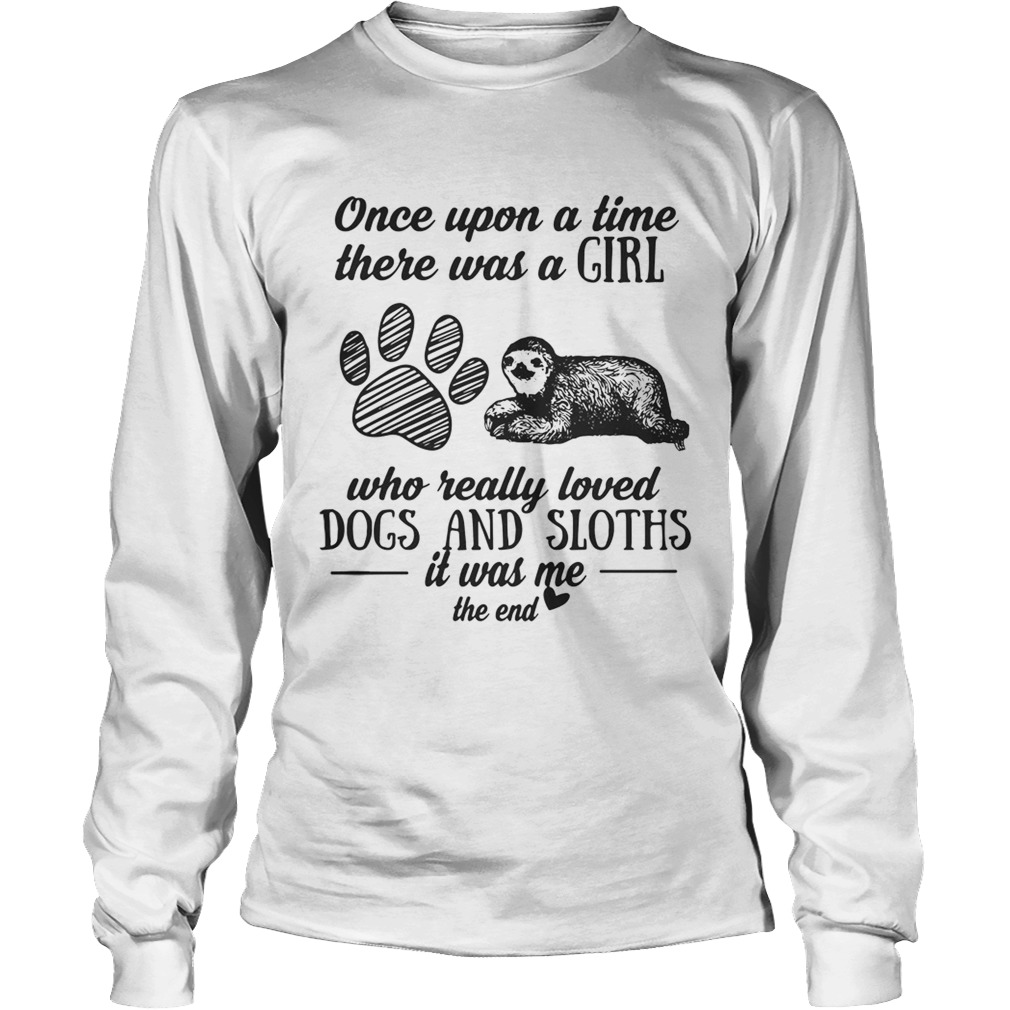 Once upon a time there was a girl who really loved dogs and sloths it was me the end shirt, hoodie, sweater and V-neck t-shirt