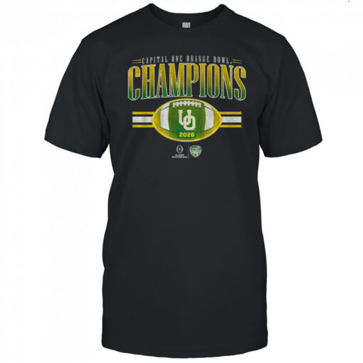 Elevate your fan gear collection with the ultimate symbol of victory – the Oregon Ducks football CFP Capital One Orange Bowl Champions 2025 logo shirt. Show off your loyalty and passion for the Ducks in every setting. Don this shirt to exude confidence and enthusiasm that will inspire fellow fans and intimidate rivals. Be a part of the winning legacy and wear this shirt proudly to keep the team’s spirit alive. Don’t miss out on owning a piece of history and being part of the elite group of supporters celebrating this monumental achievement. Get your hands on this iconic shirt today and let the world know you’re a proud Ducks fan!