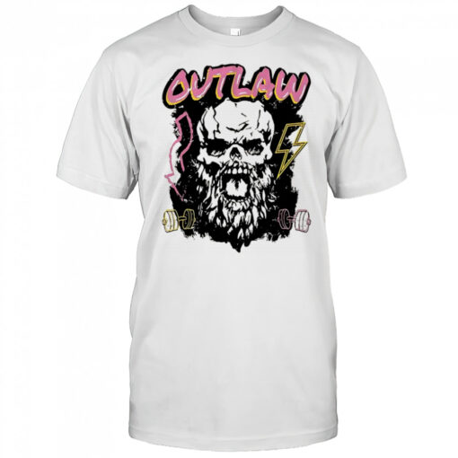 Outlaw skull arrow lighting dumbbells graphic retro shirt, hoodie, sweater, longsleeve and ladies t-shirt