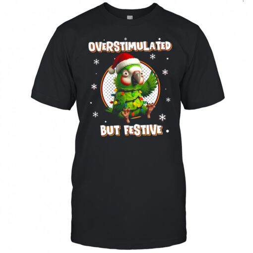 Overstimulated but festive Christmas parrot shirt, hoodie, sweater, longsleeve and ladies t-shirt