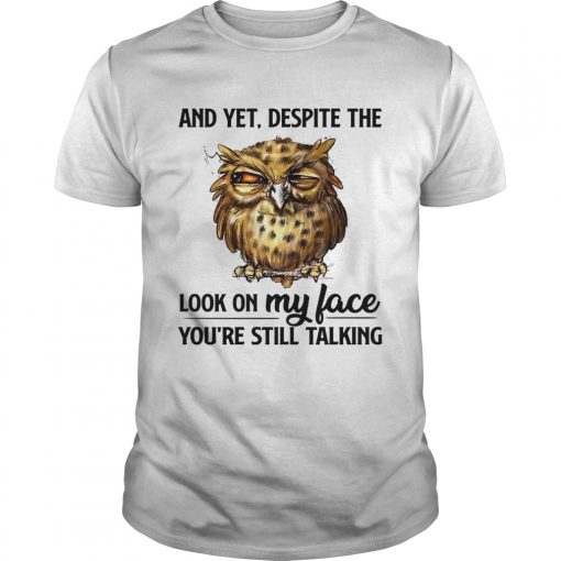 Owl and yet despite the look on my face youre still talking shirt, hoodie, sweater, longsleeve and ladies t-shirt