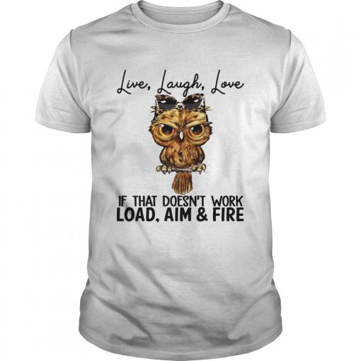 Owl Live laugh love if that doesnt work load aim and fire shirt, hoodie, sweater, longsleeve and ladies t-shirt