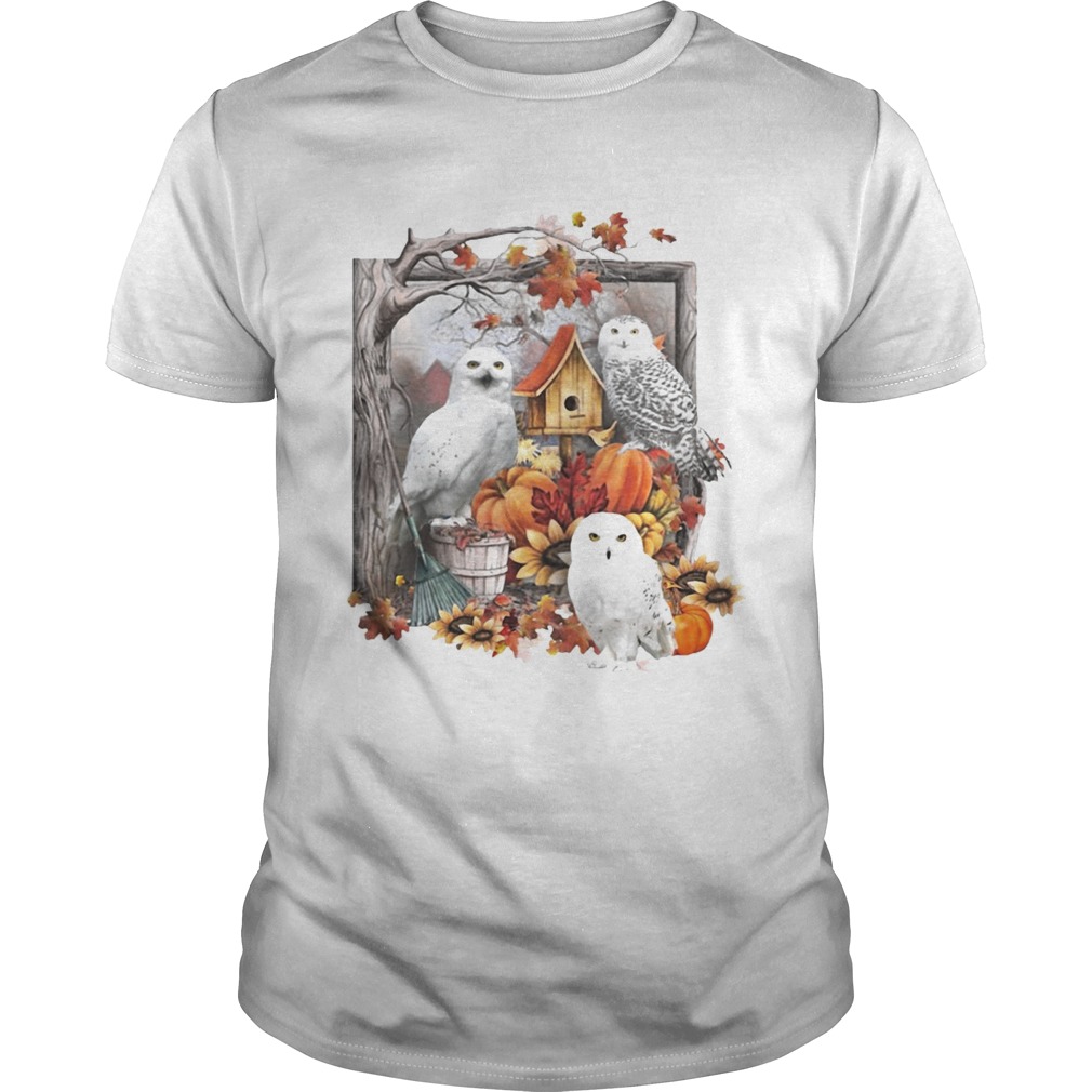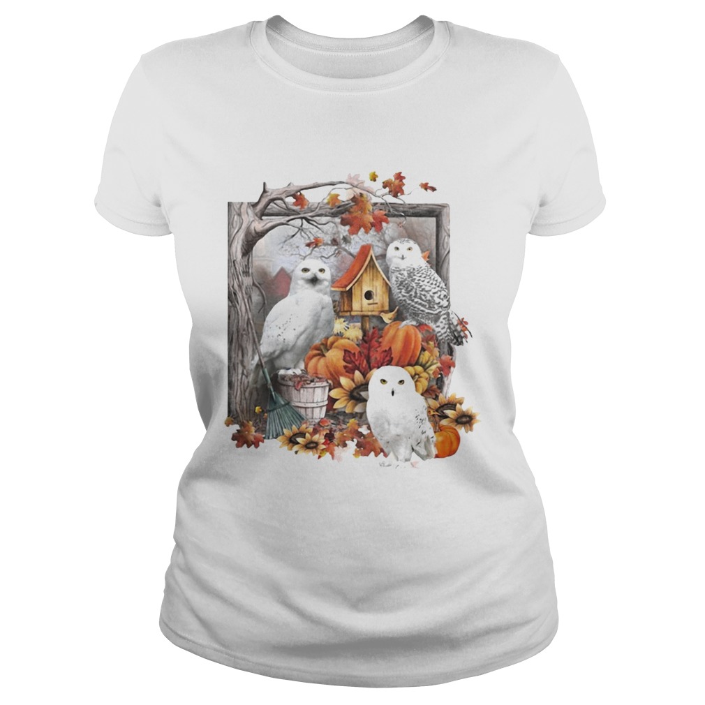Owl pumpkin flowers and autumn leaf tree shirt, hoodie, sweater, longsleeve and ladies t-shirt