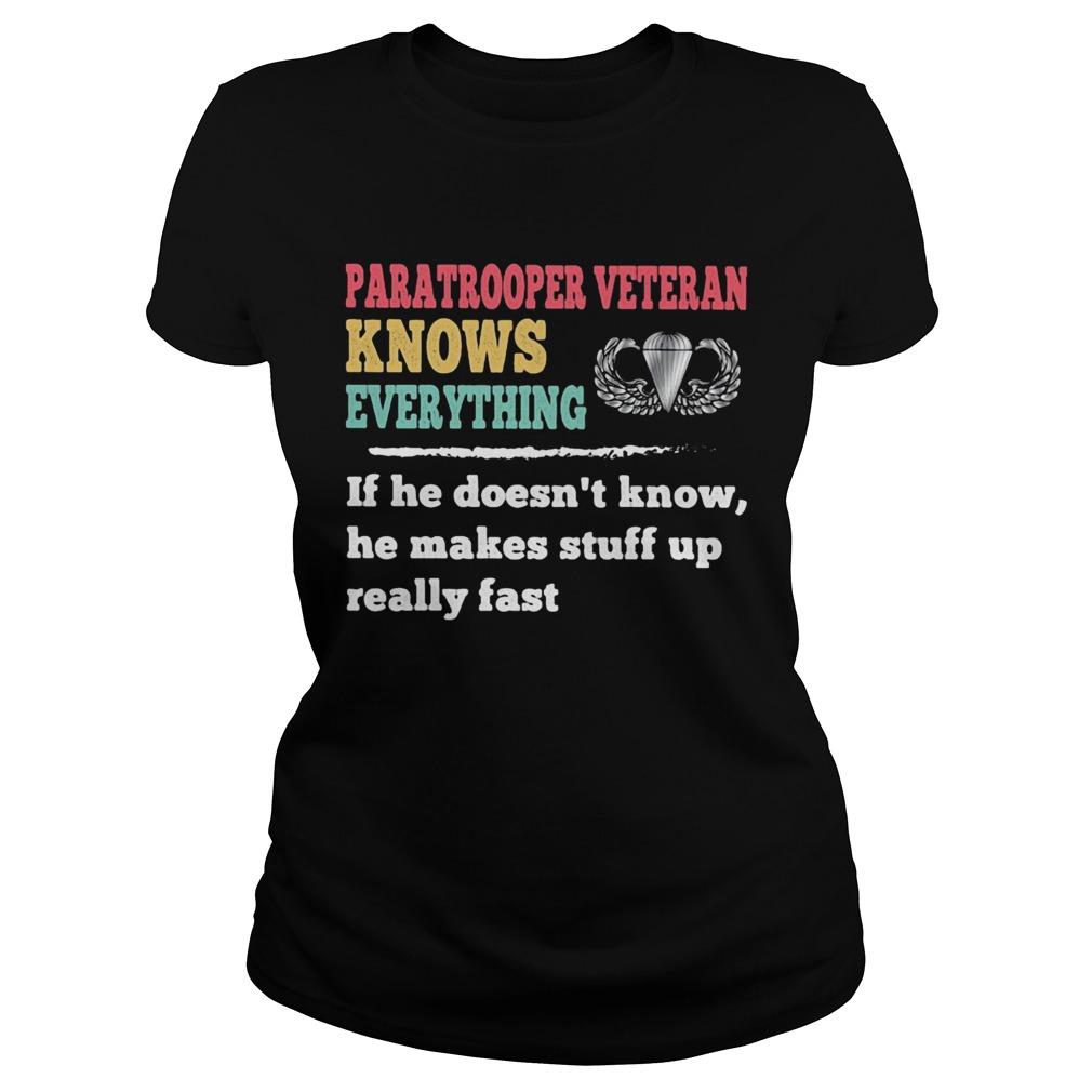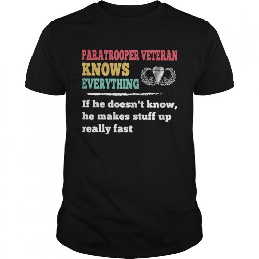 Paratrooper veteran knows everything if he doesnt know he makes shirt, hoodie, sweater, longsleeve and ladies t-shirt