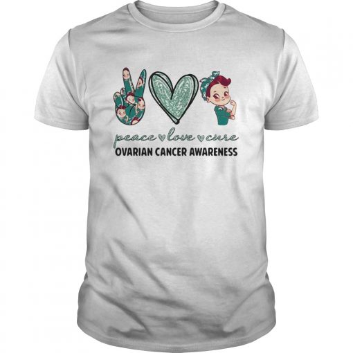 Peace love cure ovarian cancer awareness heart shirt, hoodie, sweater, longsleeve and ladies t-shirt