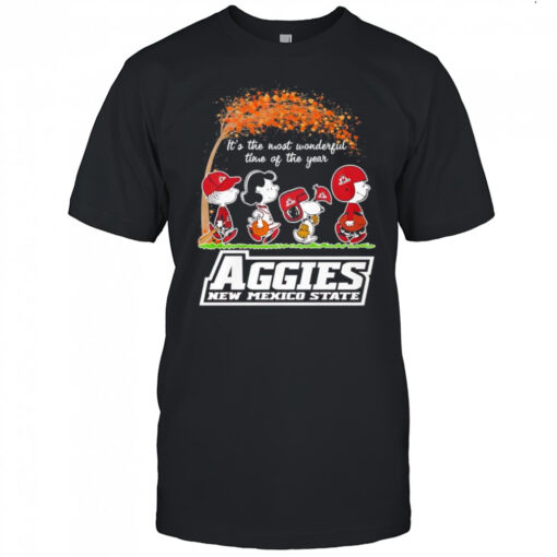 Are you ready to show off your team spirit in style? Introducing the Peanuts characters vs New Mexico State Aggies it’s the most wonderful time of the year shirt, the ultimate apparel for fans who want to stand out during game day! This unique shirt combines the beloved Peanuts characters with the fierce spirit of the New Mexico State Aggies, creating a one-of-a-kind design that is sure to turn heads. Whether you’re cheering from the stands or watching from home, this shirt will make you the envy of every fan around!