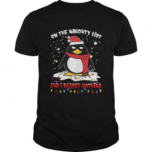 Penguin On The Naughty List And I Regret Nothing shirt, hoodie, sweater, longsleeve and ladies t-shirt
