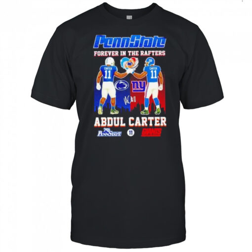 Looking for an iconic piece to showcase your love for both the Nittany Lions and Giants? The Penn State forever in the rafters Abdul Carter Nittany Lions and Giants shirt is your go-to choice. Crafted with the utmost attention to detail, this shirt exudes a unique blend of team spirit and style. The striking design pays homage to Abdul Carter, a legendary figure who left an indelible mark on both teams. Featuring vibrant team colors and a bold graphic of Carter, this shirt is a must-have for any die-hard fan looking to stand out from the crowd.