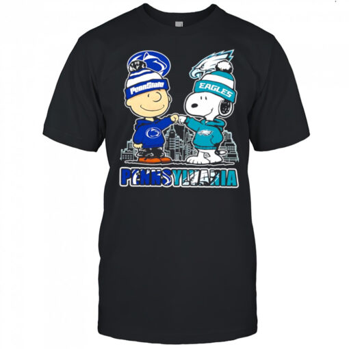 Pennsylvania Charlie Brown & Snoopy with Penn State & Philadelphia Eagles logo shirt, hoodie, sweater, longsleeve and ladies t-shirt