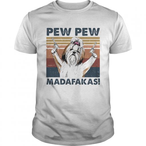 Pew pew madafakas dog gun vintage retro shirt, hoodie, sweater, longsleeve and ladies t-shirt