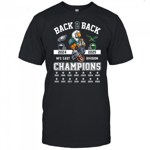 Philadelphia Eagles NFC East Division 2024 2025 Champions back to back mascot shirt, hoodie, sweater, longsleeve and ladies t-shirt