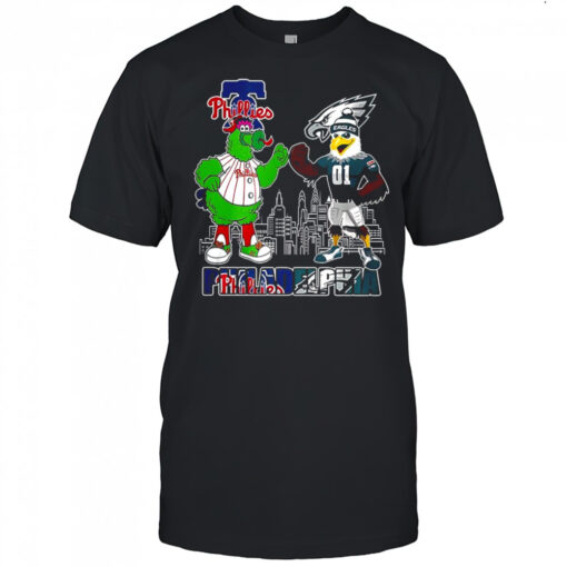 Phillie Phanatic Philadelphia Phillies touch hands Swoop Philadelphia Eagles mascot shirt, hoodie, sweater, longsleeve and ladies t-shirt
