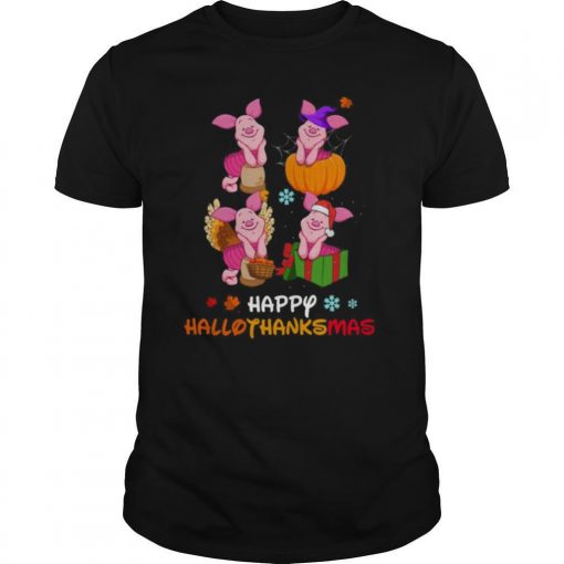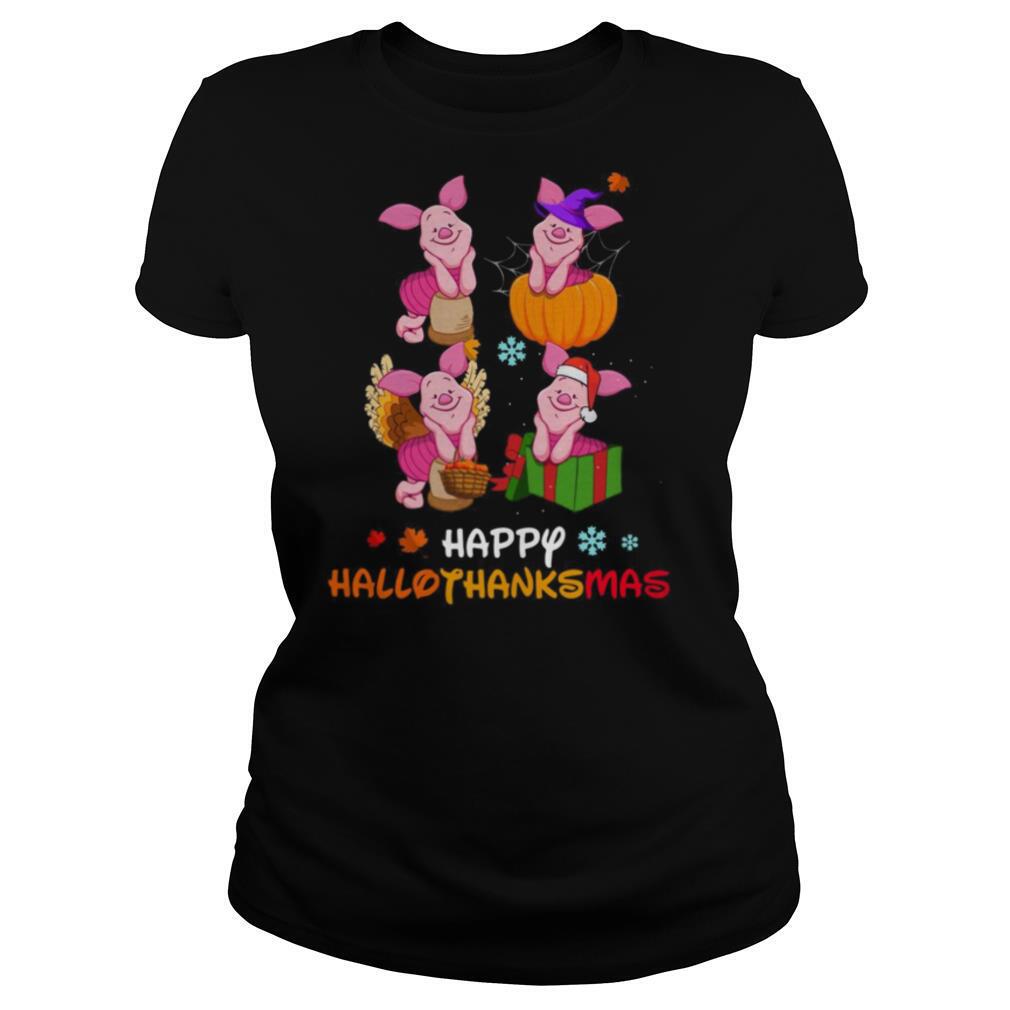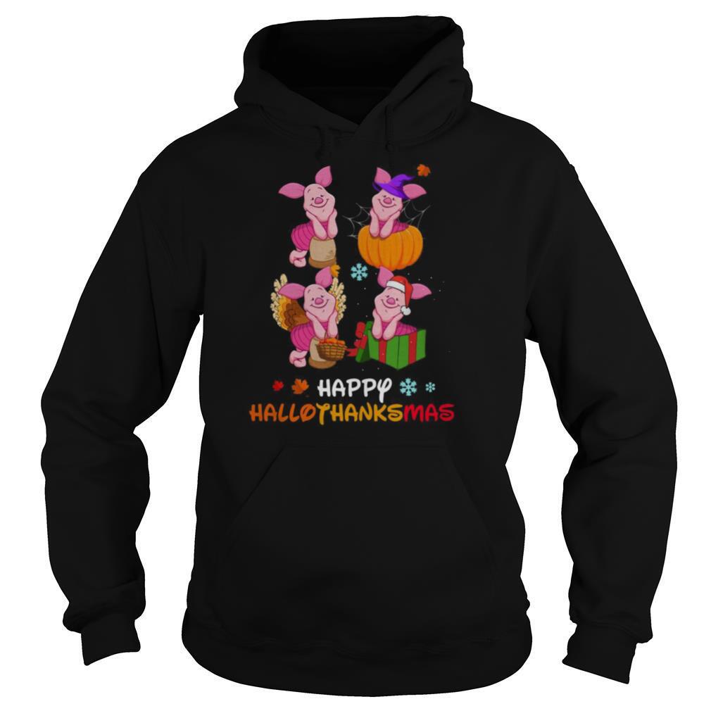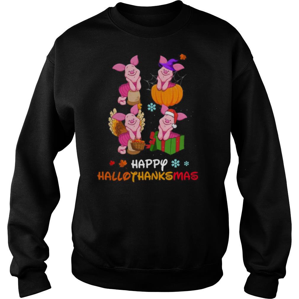 Piglet Disney Halloween And Merry Christmas Happy Hallothanksmas shirt, hoodie, sweater, longsleeve and ladies t-shirt