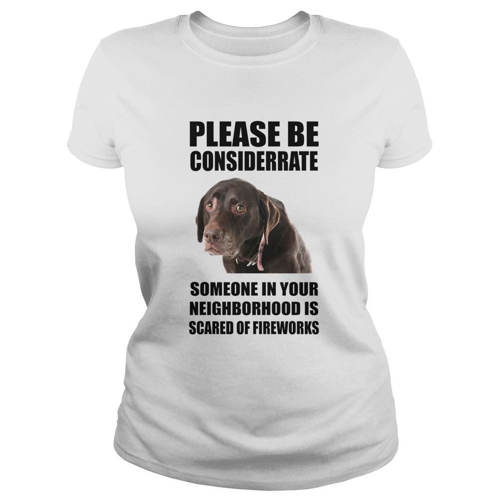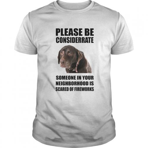 Please Be Considerate Someone In Your Neighborhood Is Scared Of Fireworks shirt, hoodie, sweater, longsleeve and ladies t-shirt