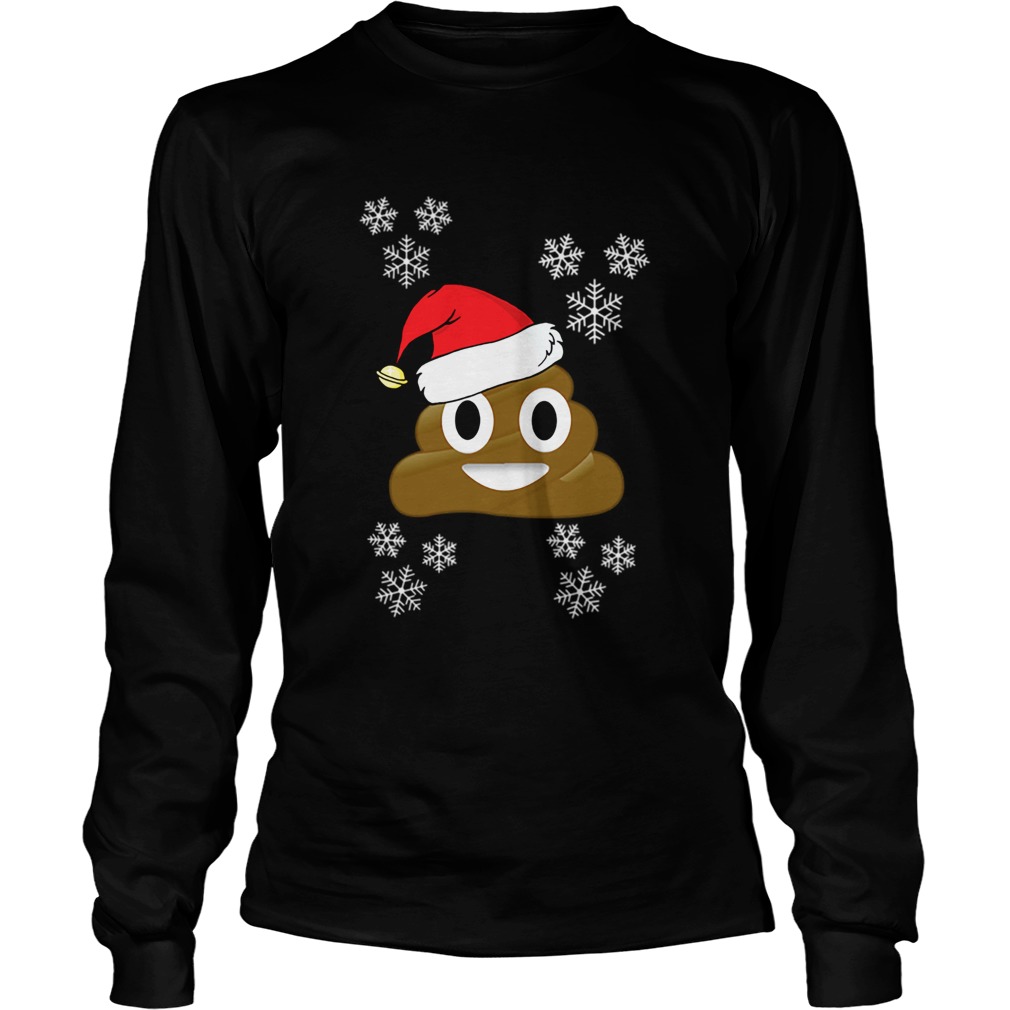 It had been the story of Bob’s life Poop Emoji Santa Hat Christmas Holiday Snowflake shirt .Life always had to be different for Bob. Small when he was a kid, Bob was often bullied by other boys. He was too little at the time to compete in sports. He was often called names he’d rather not remember. From childhood, Bob was different and never seemed to fit in. Bob did complete college, married his loving wife and was grateful to get his job as a copywriter at Montgomery Ward during the but any of the chimneys of anybody in the crowd. That it just didn’t make sense. So I went around and I told my friends, anybody with a grain of sense would know that that fat man could not get down this chimney. And so the parents–their parents wanted to know what, how I found out.They were mad at me for having pulled the covers off of Santa Claus like that. But I had figured out that one out myself, and had even gone around and said, “Well, if there’s no Santa Claus, then the toys must be here.” So I searched the house, and I found them, hidden in a closet. And I put on.